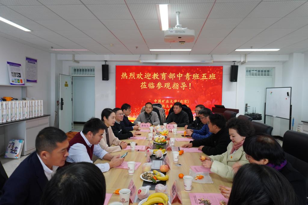 参观学习后,教育部中青班成员前往中国矿业大学(北京)。在院领导的陪同下首先参观了我校煤炭精细勘探与智能开发国家重点实验室,参观了温度压力耦合效应实验室、岩石混凝土损伤力学实验室等。接着前往力学与土木工程学院采矿岩石力学国际创新中心,左建平介绍了岩石微细观力学实验室、岩石真三轴实验室、MTS微力试验机、智能矿压监测系统、绿色开采矿山模型等模型和仪器的原理和构造以及目前实验室的建设和发展情况。