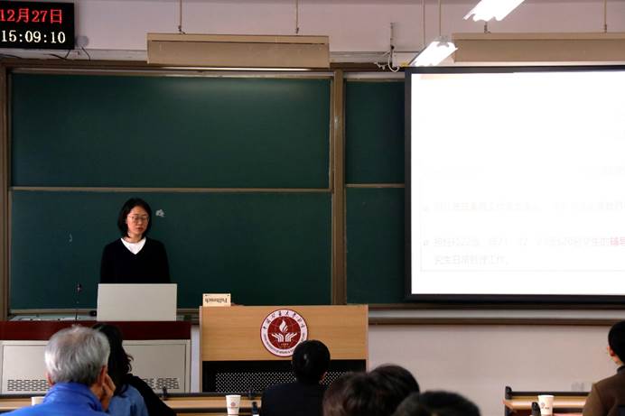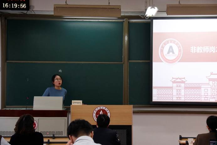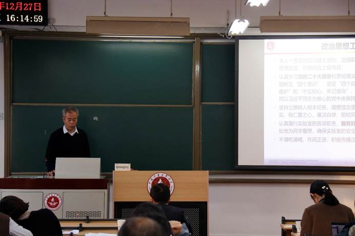 学院非专任教师岗依次做2023年度工作汇报。专职辅导员、本科生和研究生教学秘书、实验员分别结合本人分管工作实际对2023年度工作开展情况、特色和亮点工作、取得的主要成绩、工作中的反思和2024年工作计划进行了重点汇报,学院领导、各系(中心)主任和副主任、各教工党支部书记和副书记综合日常工作情况和现场汇报进行非专任教师岗人员民主测评打分。