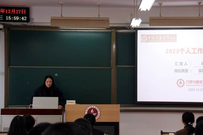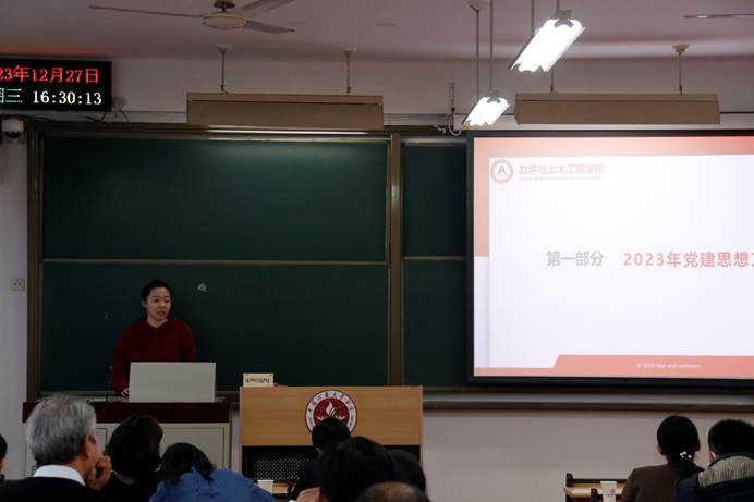2023年12月27日,力学与土木工程学院在教学楼216召开力学与土木工程学院内设机构负责人任命大会暨非专任教师岗2023年度考核汇报会议,学院党委书记李帅、院长左建平、院党委副书记项丽娜、副院长吴丽丽、刘德军出席会议,各系(中心)主任和副主任、各教工党支部书记和副书记、学院行政人员、实验员参加会议。会议由学院办公室主任何芬主持。