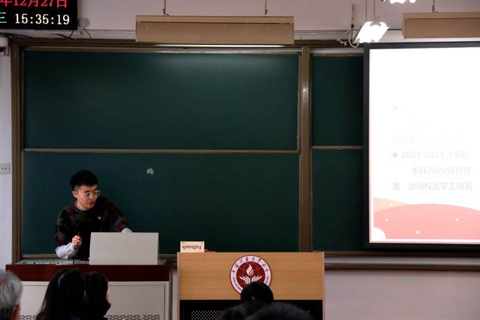 院党委书记李帅总结讲话。李帅总结学院党委在2023年取得的主要成绩,同时对全体与会教职工2024年工作提出3点要求。第一,要继续坚持和加强党的全面领导, 全院教职工要继续团结在学院党委周围,凝心聚力促发展。第二,要加强担当作为,要敢作敢为善作善成,新的内设机构负责人要尽快适应岗位投入工作。第三,要牢记初心使命,砥砺奋进前行,将自身发展建设融入学院和学校的建设发展,融入教育强国和中国民族伟大复兴的建设征程中。2024年是新的开始,希望大家同心同德、攻坚克难,以饱满的热情、勤奋的工作,继续书写学院事业发展的华彩篇章。