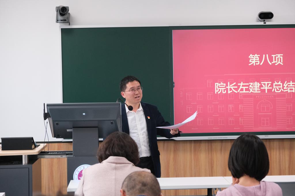 院长左建平总结讲话。他充分肯定了近年来mg冰球官网在学风建设工作上取得的成绩,同时指出毕业年级考研成功率降低等问题,说明了进一步推进学风建设的紧迫性。他就学院学风建设未来发展提出了要求,第一,学院领导和各系主任要有担当、有行动,努力加强学风建设,为国家和党培养人才;第二,班主任要有情怀,勤奋管理班级、关心同学;第三,辅导员要结合管理与专业两方面,积极加强与系主任、学生导师、班主任沟通对接,形成管理合力。